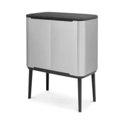 Der Bo Touch Bin von Brabantia ist eine schöne und funktionale Abfalllösung für den Haushalt. Der Bo Touch Bin aus elegantem und langlebigem beschichtetem Stahl ist mit zwei separaten Innenbehältern und einem geräuschlosen und geruchsfreien Deckel ausgestattet, der sich einfach durch sanftes Berühren öffnet. Dank seiner rechteckigen Form lässt sich der Bo Touch Bin leicht an der Wand platzieren, und sein rutschfester Boden macht den Behälter stabil und schützt den Boden. Die verstellbaren Füße verleihen dem Bo Touch ein luftiges Aussehen und eine angenehme Höhe. Den Abfalleimern aus der Bo-Kollektion wurde im Rahmen der Cradle-to-Cradle-Zertifizierung der Bronze-Level verliehen. Sie werden in Belgien hergestellt und verfügen über eine 10-jährige Garantie.