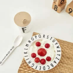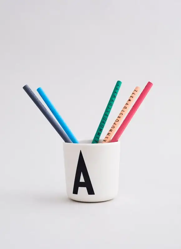 Der Kindertrinkbecher ist aus umweltfreundlichem Ecozen-Biokunststoff hergestellt, der sehr leicht, aber dennoch extrem robust und sturzsicher ist. Das Material ist BPA-, BPS- und phthalatfrei und sowohl mikrowellen- als auch spülmaschinengeeignet. Der 2021 eingeführte Ecozen-Kinderbecher hat das gleiche Design und die gleiche Farbe wie die aus dem Sortiment genommenen Melaminbecher A–Z von Design Letters.