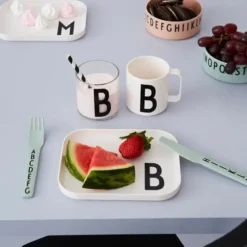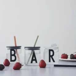 Das Trinkglas für Kinder von Design Letters trägt einen Buchstaben Ihrer Wahl in der zeitlosen Schriftart von Arne Jacobsen. Das Trinkglas wurde speziell für kleine Hände konzipiert und aus tropffreiem, spülmaschinen- und mikrowellengeeignetem Tritan gefertigt, das sowohl für heiße als auch für kalte Getränke geeignet ist.