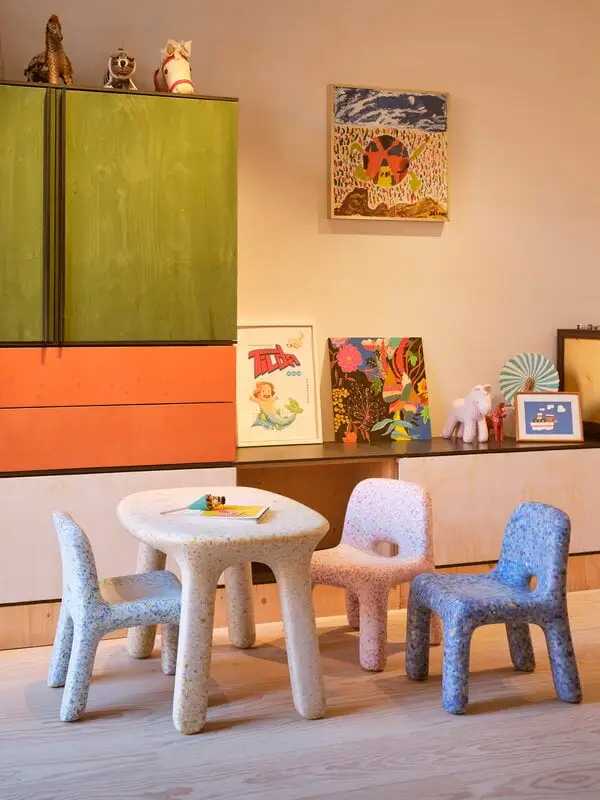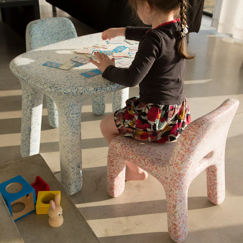 Der Charlie von ecoBirdy ist ein Mehrzweckstuhl, auf dem die Kleinsten der Familie sitzen können, um zu malen, zu essen oder Hausaufgaben zu machen. Der leichte Stuhl ist eine sichere Wahl für die Kleinsten: Trotz seiner Leichtigkeit ist der Stuhl so stabil, dass er auch beim wildesten Spiel nicht umkippt. Das für den Charlie-Stuhl verwendete Material wird Sie überraschen, denn er wird aus recyceltem Plastikspielzeug hergestellt – die kleinen bunten Punkte, die den Stuhl schmücken, waren also in ihrem früheren Leben tatsächlich Kinderspielzeuge. Das weiche Design und die verspielten Farben begeistern auch das ästhetische Empfinden der Eltern und machen den Charlie-Stuhl zu einer perfekten Ergänzung nicht nur im Kinderzimmer, sondern auch in anderen Räumen des Hauses.
