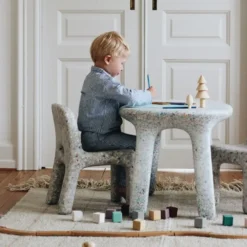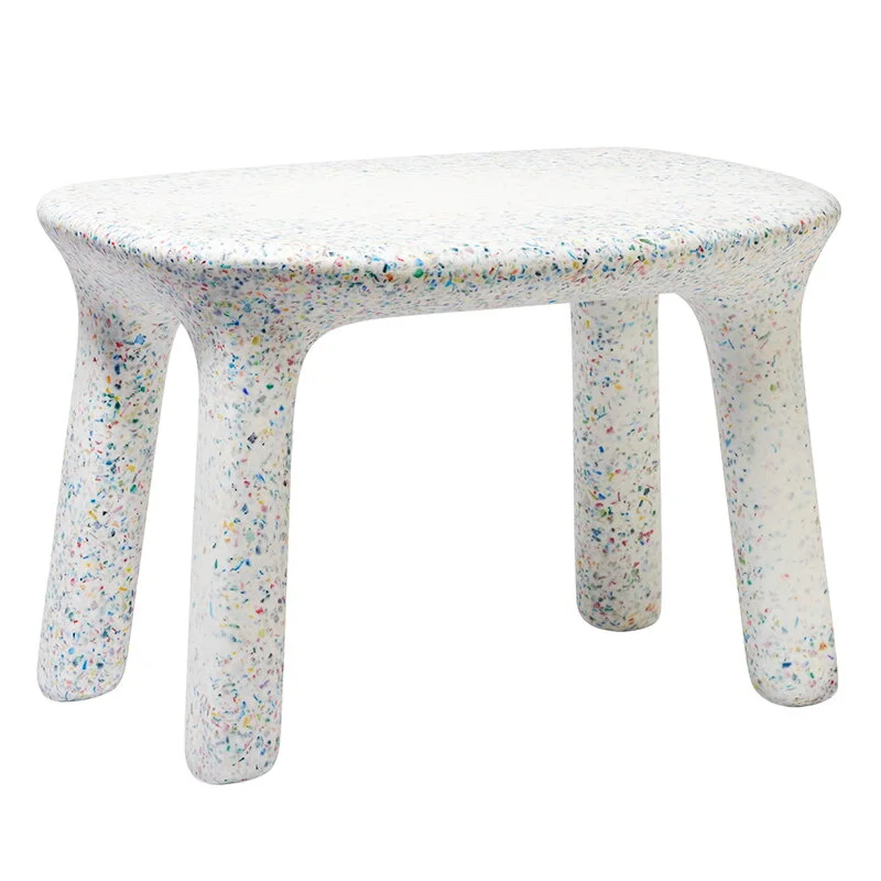 Das für den Luisa-Tisch verwendete Material wird Sie überraschen, denn er wird aus recyceltem Plastikspielzeug hergestellt – die kleinen bunten Punkte, die den Tisch schmücken, waren also in ihrem früheren Leben tatsächlich Kinderspielzeuge. Das weiche Design und die verspielten Farben begeistern auch das ästhetische Empfinden der Eltern und machen den Luisa-Tisch zu einer perfekten Ergänzung nicht nur im Kinderzimmer, sondern auch in anderen Räumen des Hauses.