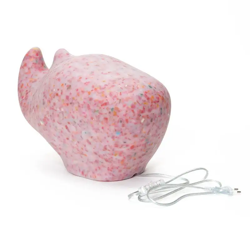 Die süße Rhino-Leuchte von ecoBirdy erhält ihren Namen von ihrer Form, die ein Rhinozeros darstellt. Das Design der fröhlichen Leuchte soll nicht nur das Bewusstsein für die bedrohte Tierart, sondern auch für die Notwendigkeit von Nachhaltigkeit wecken: die wiederaufladbare Leuchte besteht zu 100 % aus wiederverwerteten Kunststoffspielzeugen und -spielen. Die kleinen bunten Punkte, mit der die Leuchte verziert ist, waren in ihrem vorherigen Leben allesamt Kinderspielzeuge. Die verspielte Rhino ist das perfekte Nachtlicht, das den Schlaf Ihres Kindes bewacht, sie kann aber auch tagsüber im Kinderzimmer für genügend Licht zum Spielen sorgen. Und selbst im Elternschlafzimmer oder im Wohnzimmer eignet sie sich als witziges Dekoelement!