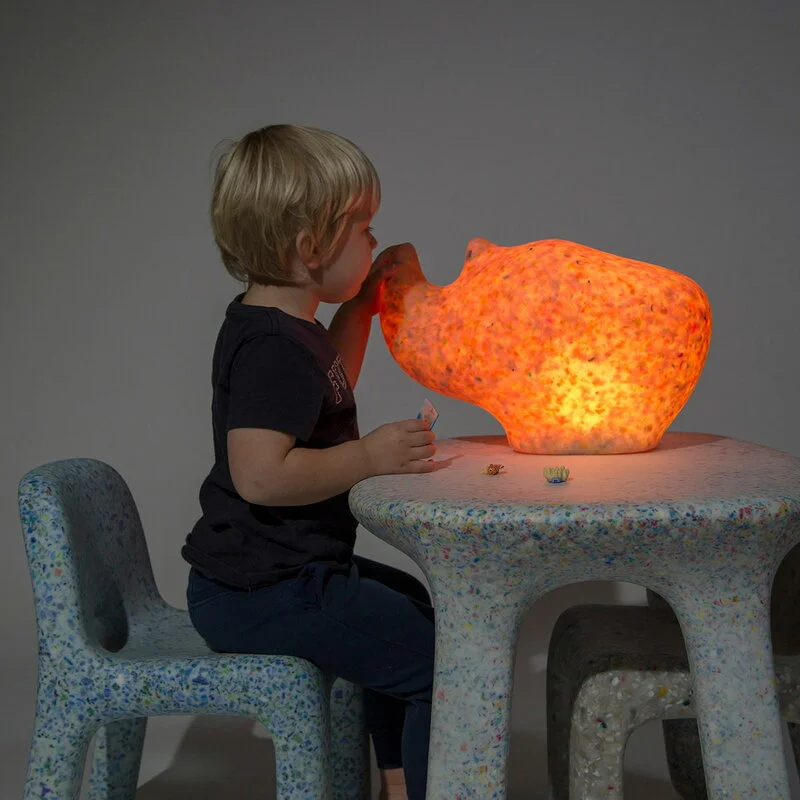 Die süße Rhino-Leuchte von ecoBirdy erhält ihren Namen von ihrer Form, die ein Rhinozeros darstellt. Das Design der fröhlichen Leuchte soll nicht nur das Bewusstsein für die bedrohte Tierart, sondern auch für die Notwendigkeit von Nachhaltigkeit wecken: die wiederaufladbare Leuchte besteht zu 100 % aus wiederverwerteten Kunststoffspielzeugen und -spielen. Die kleinen bunten Punkte, mit der die Leuchte verziert ist, waren in ihrem vorherigen Leben allesamt Kinderspielzeuge. Die verspielte Rhino ist das perfekte Nachtlicht, das den Schlaf Ihres Kindes bewacht, sie kann aber auch tagsüber im Kinderzimmer für genügend Licht zum Spielen sorgen. Und selbst im Elternschlafzimmer oder im Wohnzimmer eignet sie sich als witziges Dekoelement!