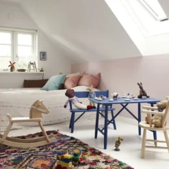 Der P9-Kinderstuhl von FDB Møbler ist ein niedlicher und robuster Stuhl aus Massivholz, dessen Abmessungen und Design speziell für das Kinderzimmer ausgelegt sind. Der von dem dänischen Designer Børge Mogensen entworfene Kinderstuhl wurde bereits 1946 entworfen, aber sein zeitloses, freundliches Design wirkt auch heute noch modern und zeitgemäß. Dank seiner robusten Konstruktion überdauert der Stuhl mehrere Generationen.