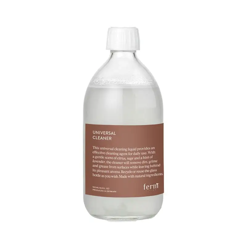Der Universalreiniger von ferm LIVING duftet herrlich nach Zitrusfrüchten, Lavendel und Salbei. Der Allzweckreiniger ist für alle Arten der Reinigung geeignet. Er wird in Dänemark aus natürlichen Inhaltsstoffen hergestellt und in einer charmant minimalistischen, nachfüllbaren Flasche aus recyceltem Glas geliefert.