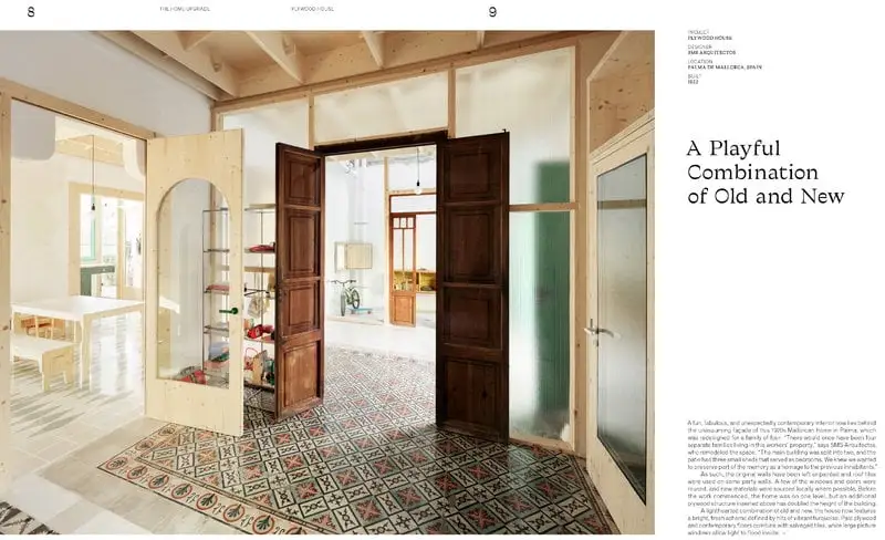 The Home Upgrade: New Homes in Remodeled Buildings bietet inspirierende Einblicke in die Renovierung alter Gebäude. Anhand von Beispielen und Interviews zeigt das Buch die vielfältigen Möglichkeiten, alte Strukturen mit modernen Lösungen zu kombinieren, sei es in Form von Grundrissänderungen und Hauserweiterungen oder durch den Einsatz nachhaltiger Bautechniken und innovativer Materialien. Das Buch behandelt Wohnhäuser, die von Vorstadthäusern bis hin zu ehemaligen Kirchen und Scheunen reichen, sowie Umbauten, die durch Naturkatastrophen verursacht wurden.