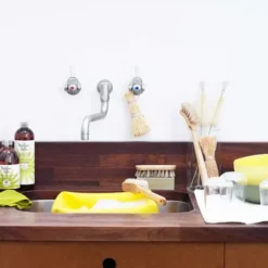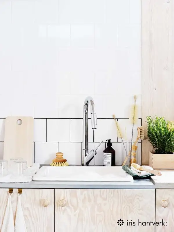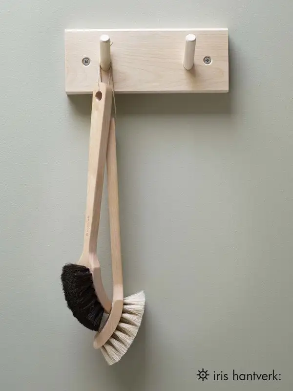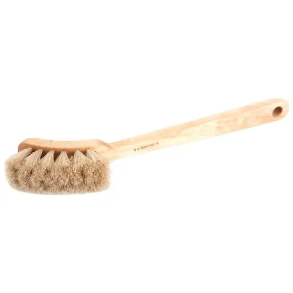 Die Spülbürste von Iris Hantverk reinigt durch den gebogenen Stiel auch die abgerundeten Böden von Weingläsern. Die Bürste ist handgefertigt und besteht aus geölter Birke und stabilem, aber biegsamem Rosshaar.