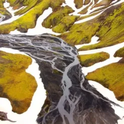 Mit ihrer Island-Serie nimmt sich Ulrike Crespo einer außergewöhnlichen Landschaft an, die seit dem 19. Jahrhundert unzählige Reise- und Kunstfotografen und -fotografinnen inspiriert hat. Und doch gelingen ihr Bilder, die den atemberaubenden Farben- und Formenreichtum dieser wilden Insel auf völlig neue Weise, oft in fast abstrakten Details, darstellen: türkisblaue Eisberge, schwarzer Vulkansand, weiß schäumende Wasserfälle, moosgrüne Felsen und schwefelgelbe Kieswüsten.