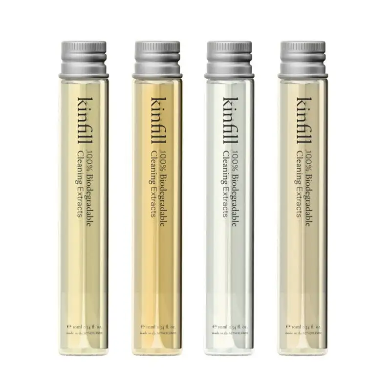 Die Idee hinter den selbst gemischten Konzentraten und den Glasflaschen von Kinfill ist die Reduzierung der Menge an Plastikmüll. Dieselben Flaschen können immer wieder verwendet werden: Füllen Sie die Konzentrate in die Flaschen, füllen Sie sie mit Wasser auf und schwenken Sie sie vorsichtig. Wenn Sie das gesamte Reinigungsprodukt verbraucht haben, wiederholen Sie die Schritte! Starterkits und Nachfüllpackungen sind separat erhältlich, so dass Sie weiterhin dieselben Glasflaschen verwenden und später nur weitere Konzentrate nachkaufen können. Die umweltfreundlichen, biologisch abbaubaren Reinigungsprodukte bestehen aus reinen, aber wirksamen Inhaltsstoffen, die keine Chemikalien enthalten, die für Sie oder die Umwelt schädlich sein könnten.