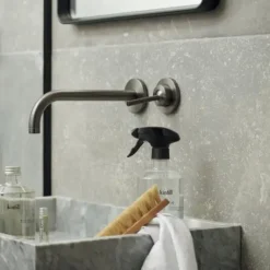Der Glasreiniger von Kinfill hinterlässt alle Glasoberflächen glänzend und streifenfrei, egal ob Sie Fenster oder einen Badezimmerspiegel reinigen. Das Starterkit enthält eine Glassprühflasche und ein separates Röhrchen mit einem nach Gurke duftenden Reinigungskonzentrat.