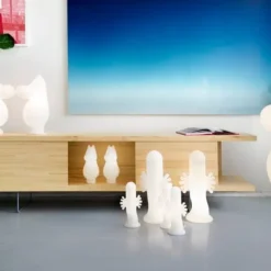 Die Leuchte Snorkfräulein basiert auf der hübschen Mumin-Figur, die von Tove Jansson geschaffen wurde. Die Mumin-Leuchtenkollektion zeigt drei beliebte Bewohner des Mumintals: Mumin, Snorkfräulein und Hatifnatten. Alle Leuchten werden in Kerava in Finnland handgefertigt. Das Konzept wurde in Zusammenarbeit mit Harri Koskinen entworfen und 2014 zur Feier des 100-jährigen Geburtstags von Tove Jansson auf den Markt gebracht. Verleihen Sie Ihrem Zuhause den sanften Schein der entzückenden Mumins!