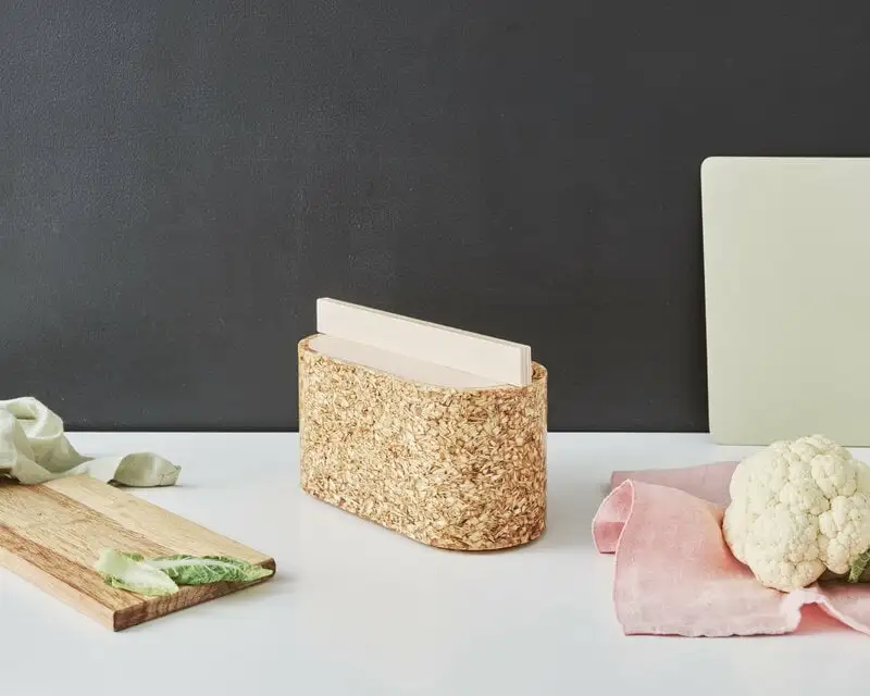 Die Biowaste Box der finnischen Marke Niimaar bietet eine moderne und praktische Möglichkeit, Bioabfälle zu sortieren und zu lagern. Die von Andreu Carulla entworfene Biowaste Box besteht aus dem lebhaft strukturierten Holzverbundwerkstoff Woodio und einem hellen Deckel aus Birkensperrholz. Die formschöne und leicht zu reinigende Biowaste Box kann auf dem Küchentisch aufgestellt und ohne Bioabfallbeutel verwendet werden. Die Boxen lassen sich auch gut als Vorratsbehälter verwenden und es können mehrere Boxen übereinander gestapelt werden. Die Biowaste Box wird in Finnland hergestellt.