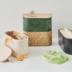 Die Biowaste Box der finnischen Marke Niimaar bietet eine moderne und praktische Möglichkeit, Bioabfälle zu sortieren und zu lagern. Die von Andreu Carulla entworfene Biowaste Box besteht aus dem lebhaft strukturierten Holzverbundwerkstoff Woodio und einem hellen Deckel aus Birkensperrholz. Die formschöne und leicht zu reinigende Biowaste Box kann auf dem Küchentisch aufgestellt und ohne Bioabfallbeutel verwendet werden. Die Boxen lassen sich auch gut als Vorratsbehälter verwenden und es können mehrere Boxen übereinander gestapelt werden. Die Biowaste Box wird in Finnland hergestellt.