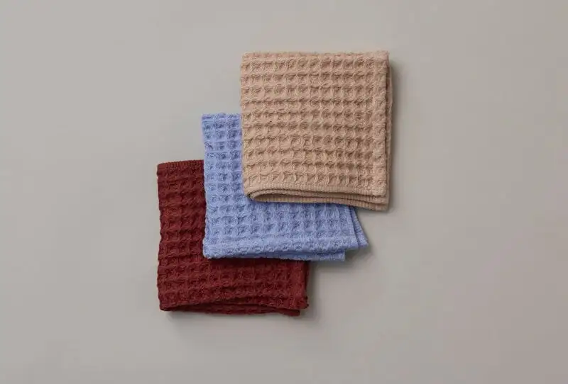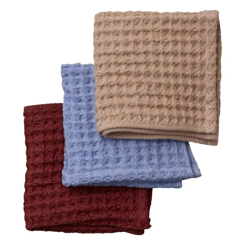 Das Nuppu-Junior-Handtuch-Set enthält Handtücher aus Baumwoll-Leinen in drei schönen Farben. Das weiche Waffelgewebe ist sehr saugfähig und atmungsaktiv. Die hochwertigen Handtücher des japanischen Herstellers Imabar können problemlos auf Reisen oder zum Picknick mitgenommen werden, statt Servietten oder Küchenrolle zu verwenden.