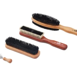 Der Bürstenreiniger von Redecker Bürstenhaus ist wie eine kleine Harke, mit der Sie sowohl Kleiderbürsten als auch Haarbürsten durch Kämmen reinigen können. Der Bürstenreinigungskamm hat Metallborsten und einen schönen Buchenholzgriff, der angenehm in der Hand liegt.
