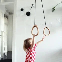 Die Lillagunga-Ringe verbinden Sport und Design auf eine lustige und elegante Art und Weise! Die Gymnastikringe sind sowohl für Erwachsene als auch für Kinder geeignet und helfen, Kraft, Gleichgewicht und Flexibilität zu entwickeln. Sie sind eine hervorragende Ergänzung für viele Arten von Räumen, von Kinderzimmern bis hin zu Büros. Die Ringe bestehen aus sorgfältig gefertigten Holzelementen, die glatt miteinander verleimt wurden und guten Halt für kleine und große Hände bieten. Die eleganten Lillagunga-Produkte werden in Finnland entworfen und hergestellt und sind für eine lange Lebensdauer ausgelegt.