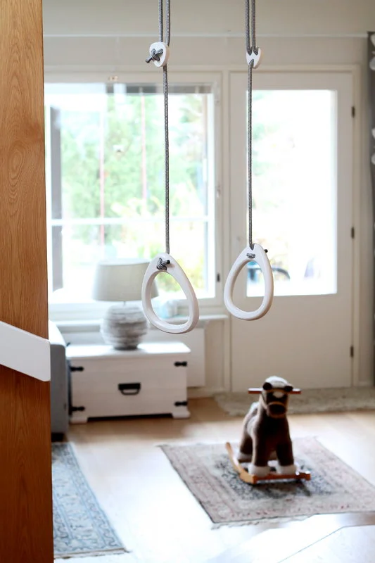 Die Lillagunga-Ringe verbinden Sport und Design auf eine lustige und elegante Art und Weise! Die Gymnastikringe sind sowohl für Erwachsene als auch für Kinder geeignet und helfen, Kraft, Gleichgewicht und Flexibilität zu entwickeln. Sie sind eine hervorragende Ergänzung für viele Arten von Räumen, von Kinderzimmern bis hin zu Büros. Die Ringe bestehen aus sorgfältig gefertigten Holzelementen, die glatt miteinander verleimt wurden und guten Halt für kleine und große Hände bieten. Die eleganten Lillagunga-Produkte werden in Finnland entworfen und hergestellt und sind für eine lange Lebensdauer ausgelegt.