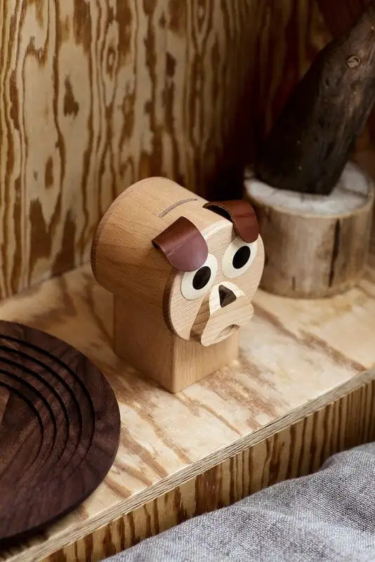 Tinder Dog von Spring Copenhagen ist ein liebenswertes Sparschwein und zugleich auch ein Wachhund, der gut auf Ihre gesparten Münzen aufpasst. Die Tinder Dog-Sparbüchse wurde von Jesper Wolff entworfen und erhielt seinen Namen von Hans Christian Andersens klassischem Märchen „The Tinderbox“ („Das Feuerzeug“). Die Tinder Dog-Sparbüchse, die aus Buche, Ahorn und Nussbaum gefertigt und mit Ohren und Schwanz aus Rindsleder versehen ist, bereitet Kindern und Erwachsenen gleichermaßen Freude.