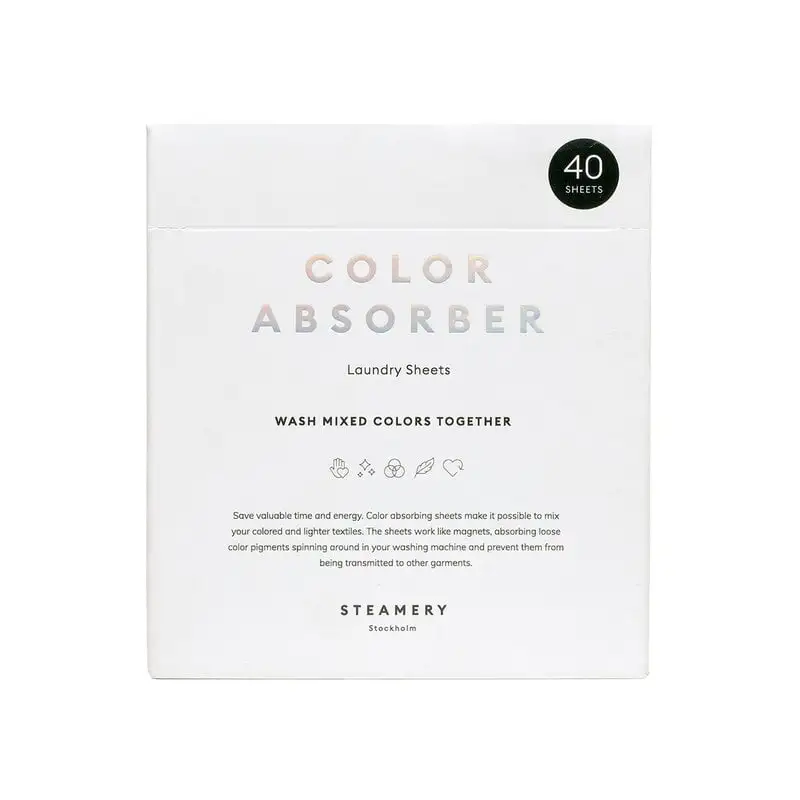 Mit den Farbabsorbierern von Steamery können Sie farbige und helle Textilien ohne Angst vor Verfärbungen zusammen waschen. Wie der Name schon andeutet, absorbieren die Tücher lose Farbpigmente und verhindern so, dass diese in der Waschmaschine auf andere Textilien übertragen werden. Die farbabsorbierenden Tücher sind sehr effektiv. Dennoch können sie nicht 100 % der Farbpigmente absorbieren. Daher empfehlen wir nicht, die hellsten und die dunkelsten Kleidungsstücke zusammen zu waschen oder neue rote Socken zusammen mit dem weißen Lieblingshemd in dieselbe Waschladung zu geben. Neue Kleidungsstücke sollten mindestens fünfmal mit ähnlichen Farben gewaschen werden, bevor man Farben mischt.