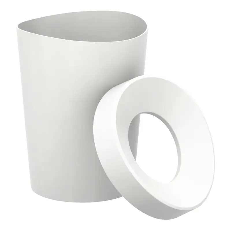 Der Happy Bin von Vitra mit seinem unverwechselbaren Look wurde von Michel Charlot designt. Der Abfalleimer wurde von Cartoons und Skulpturen inspiriert und bringt eine angenehme Verspieltheit in die geschäftige Büroatmosphäre. Mit seiner asymmetrischen Form eignet sich der Happy Bin ideal für das Büro, aber auch für das Badezimmer, die Küche oder das Schlafzimmer. Der stylishe Happy Bin ist aus strapazierfähigem Polypropylen gefertigt und hat einen praktischen Deckel mit Loch in der Mitte.