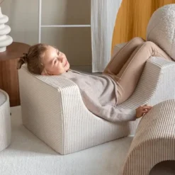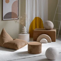 Das Pouf-Set besteht aus zwei unterschiedlich geformten Modulen, die entweder allein oder zusammen verwendet werden können. Die weichen, abnehmbaren Bezüge bestehen aus Cord, der ursprünglich aus recycelten PET-Flaschen hergestellt wurde – das Spielset schenkt also bereits genutztem Kunststoff ein neues Leben. Der umweltfreundliche Pouf sorgt nicht nur im Kinderzimmer für Spielspaß, sondern sieht auch so gut aus, dass es den Erwachsenen nichts ausmacht, wenn die verschiedenen Teile des Sets gelegentlich in andere Räume des Hauses wandern.